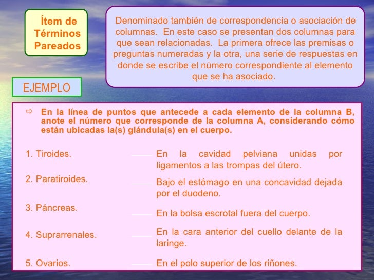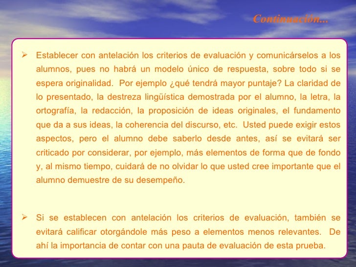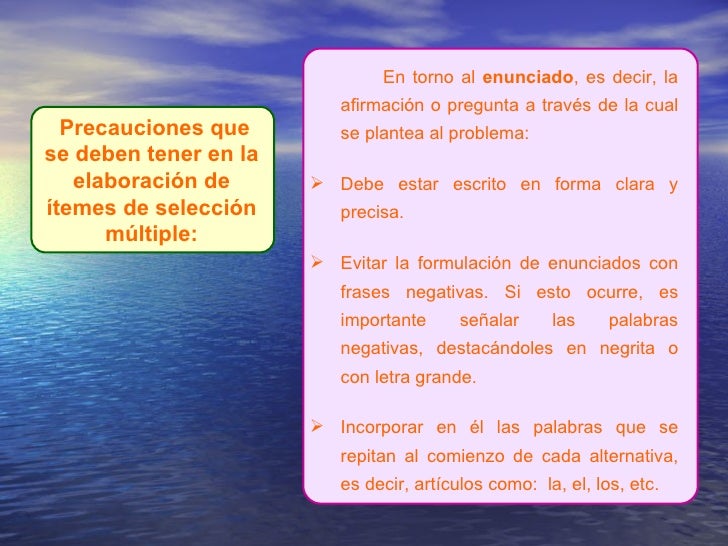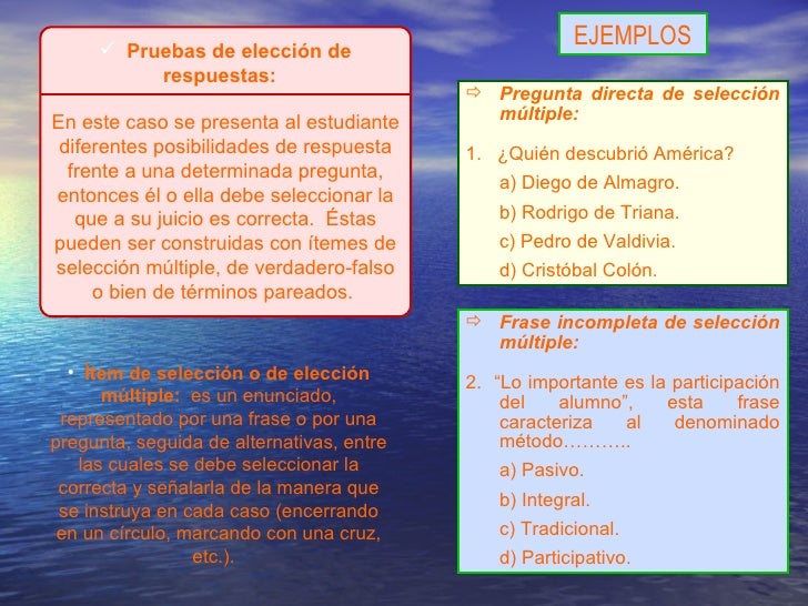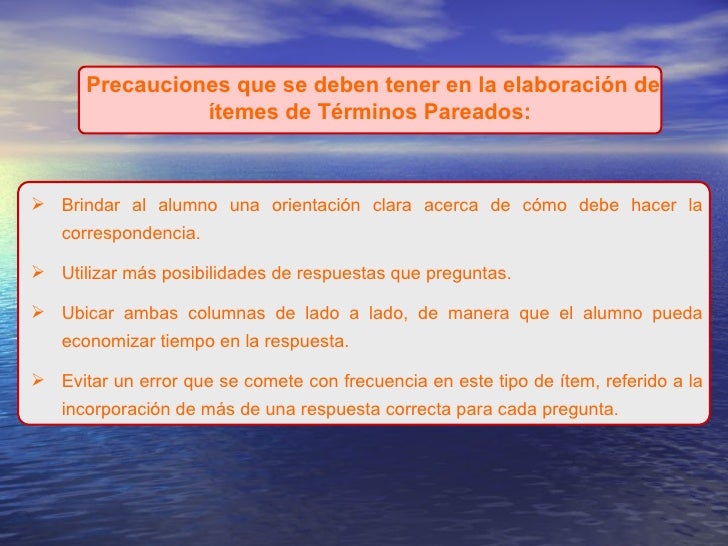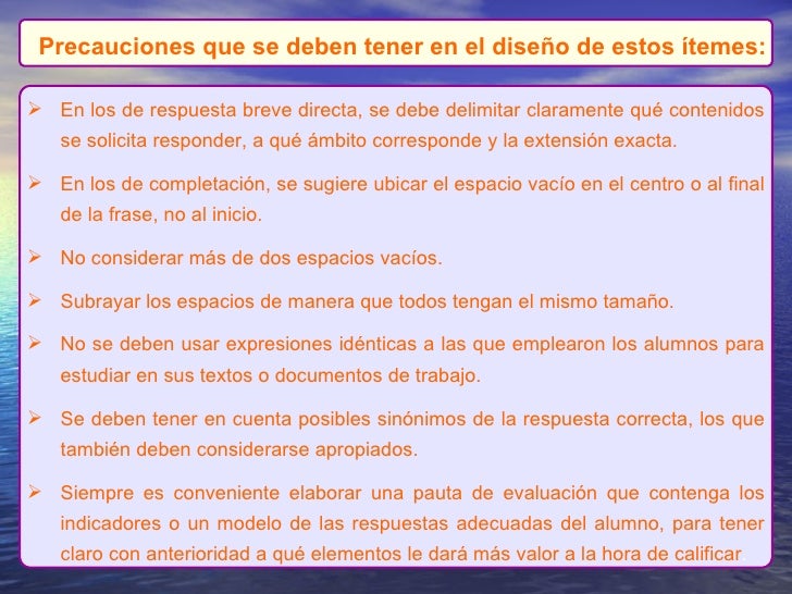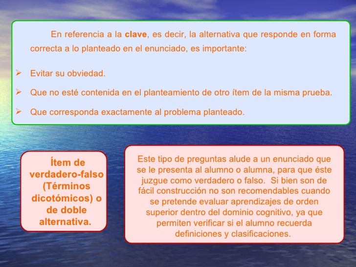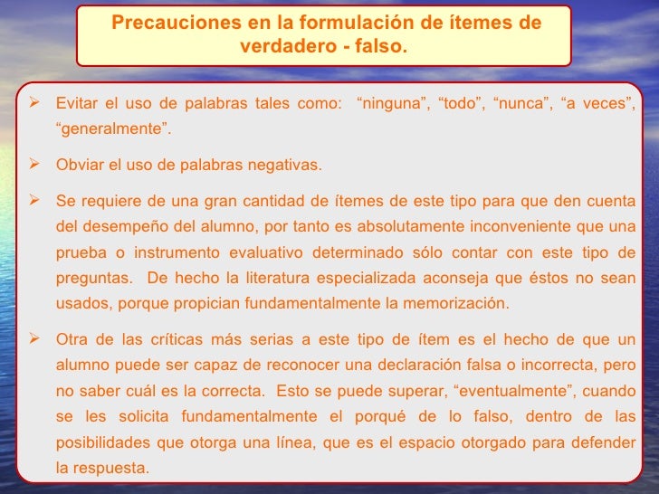 instrumento evaluativo determinado sólo contar con este tipo de preguntas. De