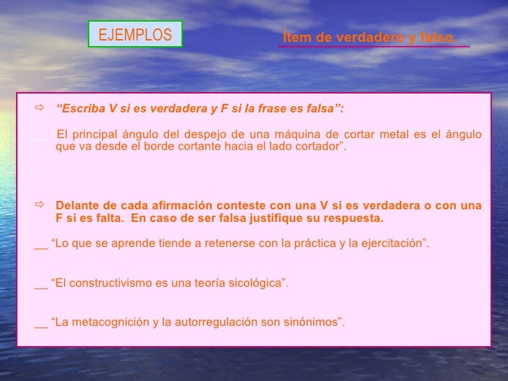 o alumna, para que éste juzgue como verdadero o falso. Si bien son de fácil