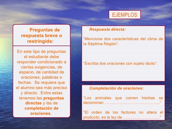 propias de las pruebas de elaboración de respuestas y preguntas que son